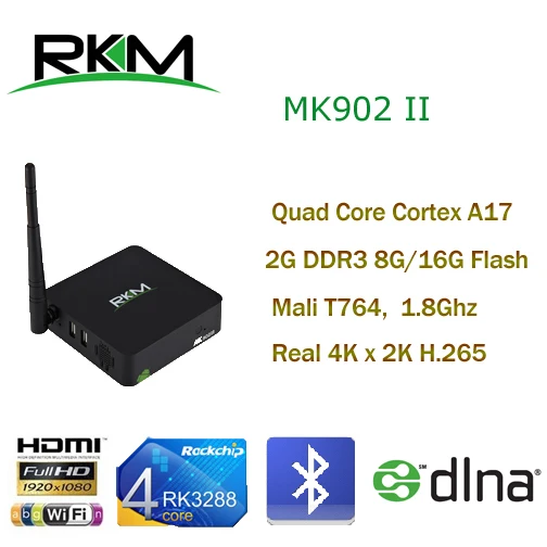 RKM MK902II Streaming media player RK3288 Quad Core Cortex A17 Android4.4 TV BOX 2G RAM, 16G ROM,2.4G/5G WIFI, Gigabit LAN, 4K, H.265, [MK902II/16G]